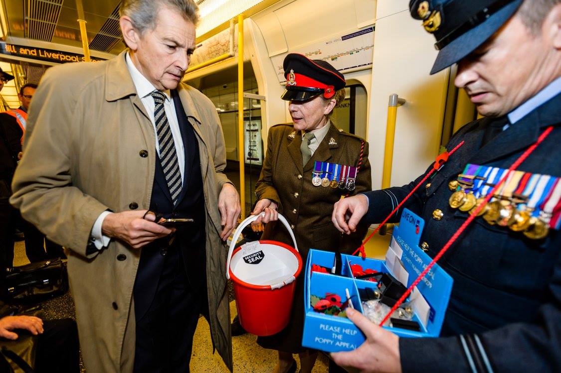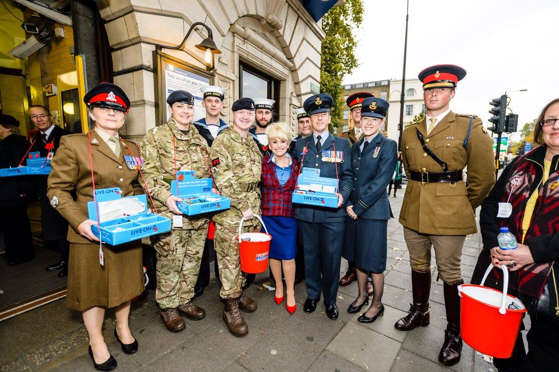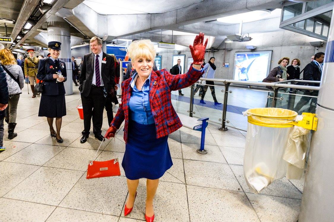 The troops collected donations from commuters, tourists and workers in mainline stations, Underground stations and the surrounding streets. Military Bands from all three services set the fundraising efforts to music. MPs, Lords and Celebrities have joined in to add weight to their efforts. The RAF entertained shoppers in Covent Garden with the Squadronaires and a Spitfire Plane. And East End legend, actress Barbara Windsor took the poppy train with troops on the Circle Line from Westminster to Gt Portland St.